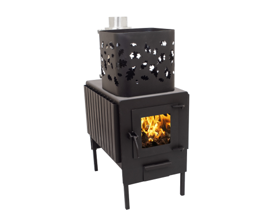 Оснащена конвектором ( стаканом ) как и закрытая каменка для увеличения площади нагрева камней. Для использования каменки нужно снять крышку конфорки и установить на ее место стакан.